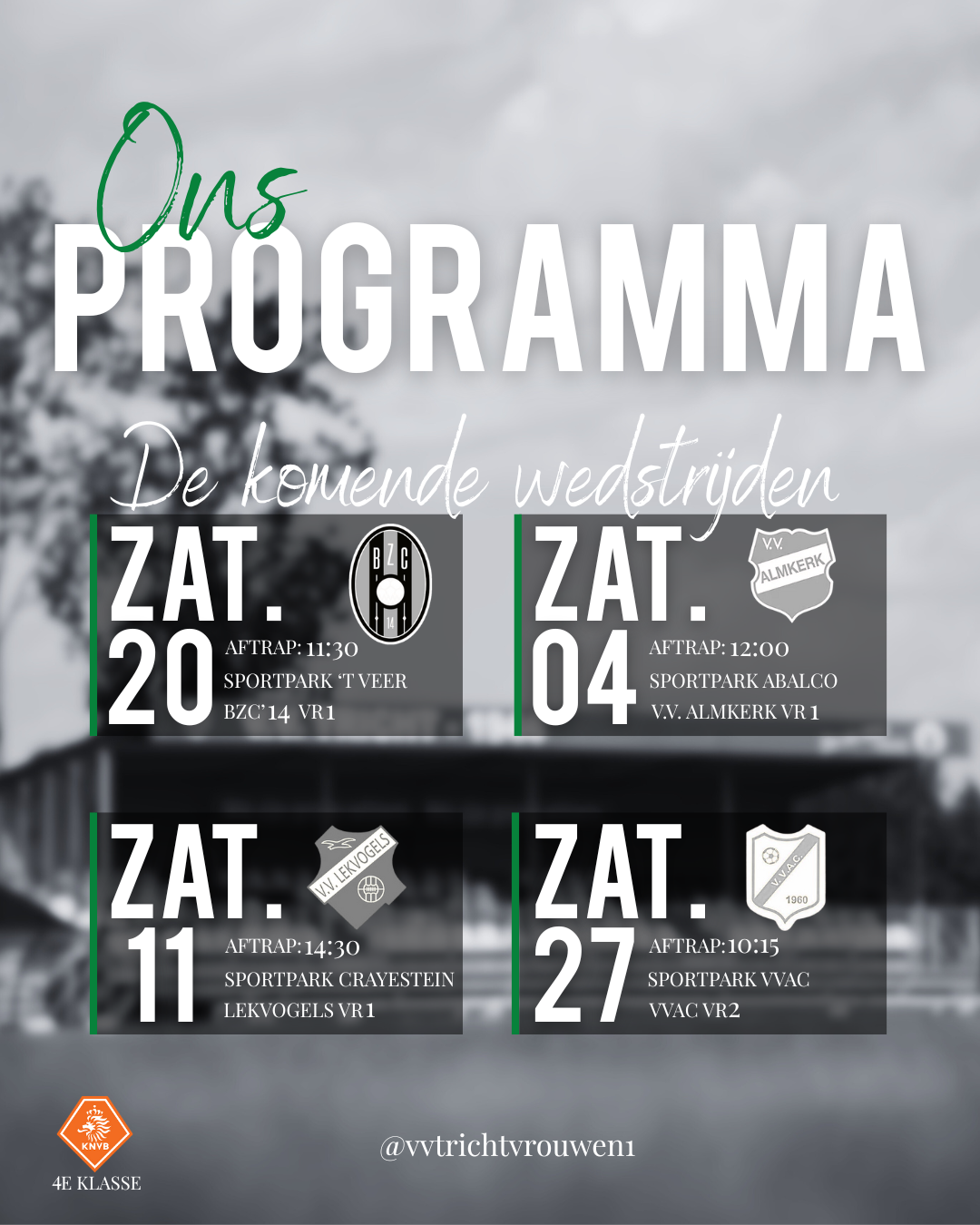 Binnen V.V. Tricht ben ik op meerdere manieren actief en combineer ik mijn passie voor voetbal met creativiteit en betrokkenheid. Ik speel in VR1, zit in de jeugdcommissie en sta wekelijks op het veld als trainster van de JO10.