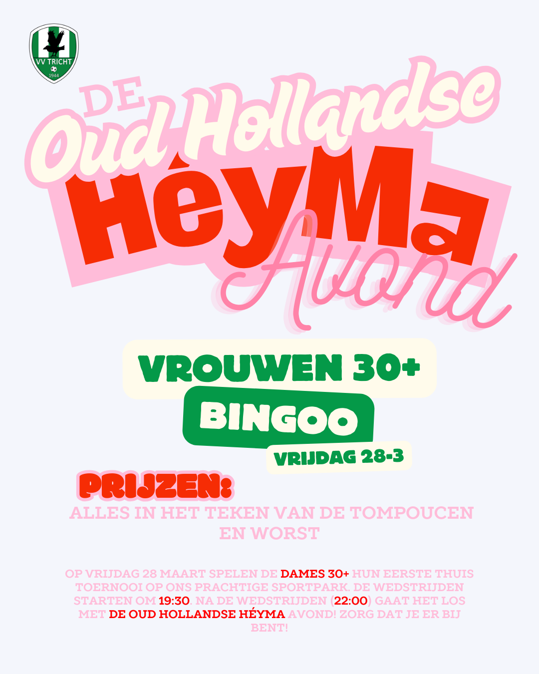 Binnen V.V. Tricht ben ik op meerdere manieren actief en combineer ik mijn passie voor voetbal met creativiteit en betrokkenheid. Ik speel in VR1, zit in de jeugdcommissie en sta wekelijks op het veld als trainster van de JO10.